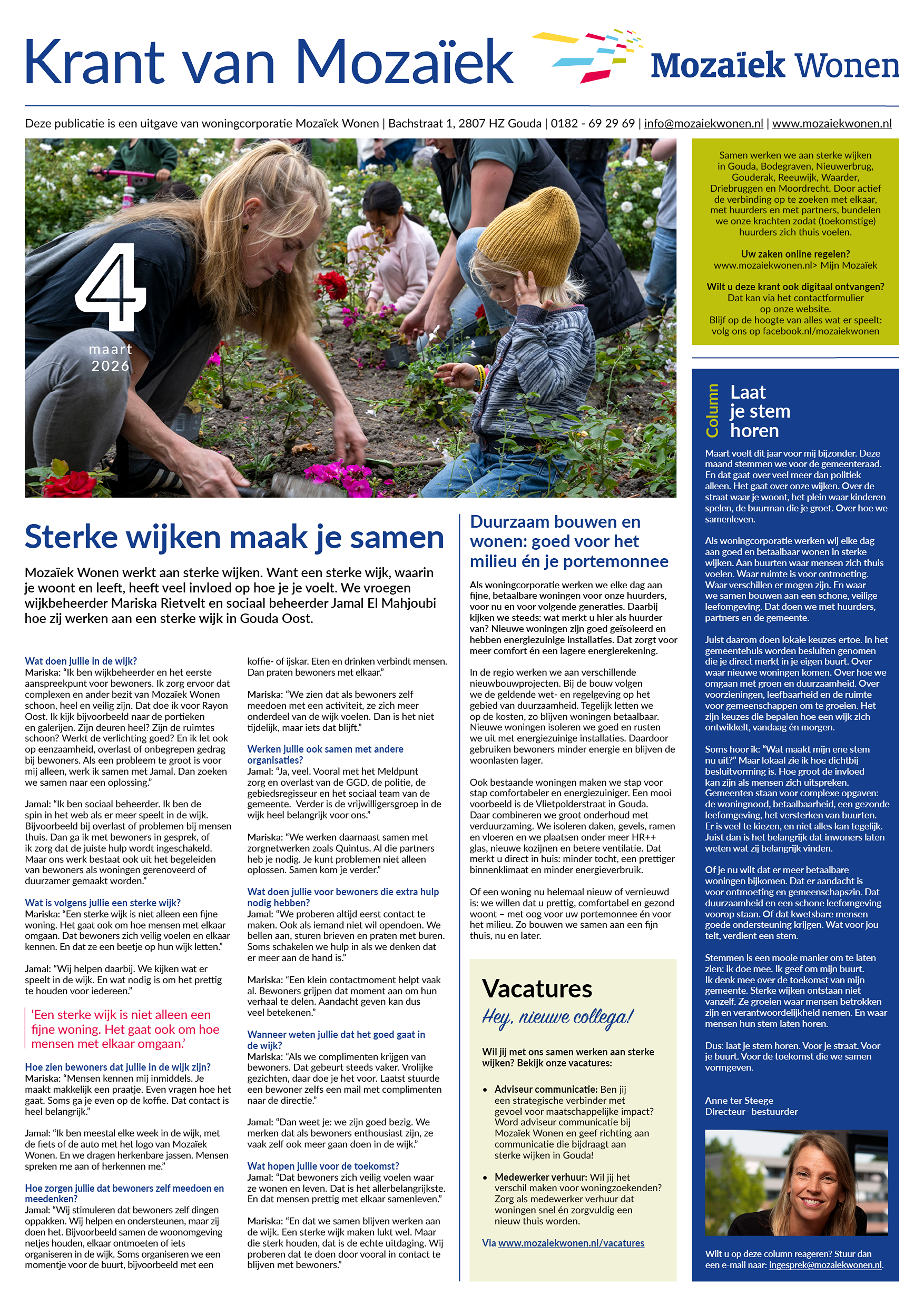 Met de opening van de Gouwe Huse aan de Voltaweg zet Gouda een belangrijke stap in het bieden van een nieuwe kans aan inwoners die overal zijn vastgelopen. De 5 kleine woningen zijn ontwikkeld om bewoners rust, stabiliteit en passende begeleiding te bieden. Het is een plek waar zij kunnen werken aan herstel en toekomstperspectief. Het project is tot stand gekomen dankzij de intensieve samenwerking tussen Mozaïek Wonen, het Leger des Heils en de gemeente Gouda.